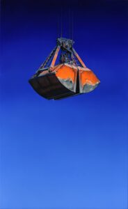 Ses engins au repos, immobiles et soulagés de toute présence humaine, s’imposent dans ses peintures comme des icônes médiévales, où l’or est remplacé par un ciel bleu immatériel.