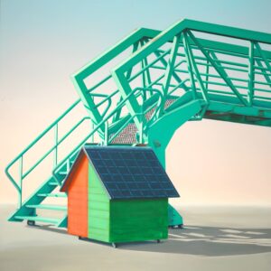 Container, engins de chantier, terrains vagues ou balises maritimes constituent l’univers artistique d’Odile Ferron-Verron, proposant aux visiteurs une véritable plongée dans la couleur.